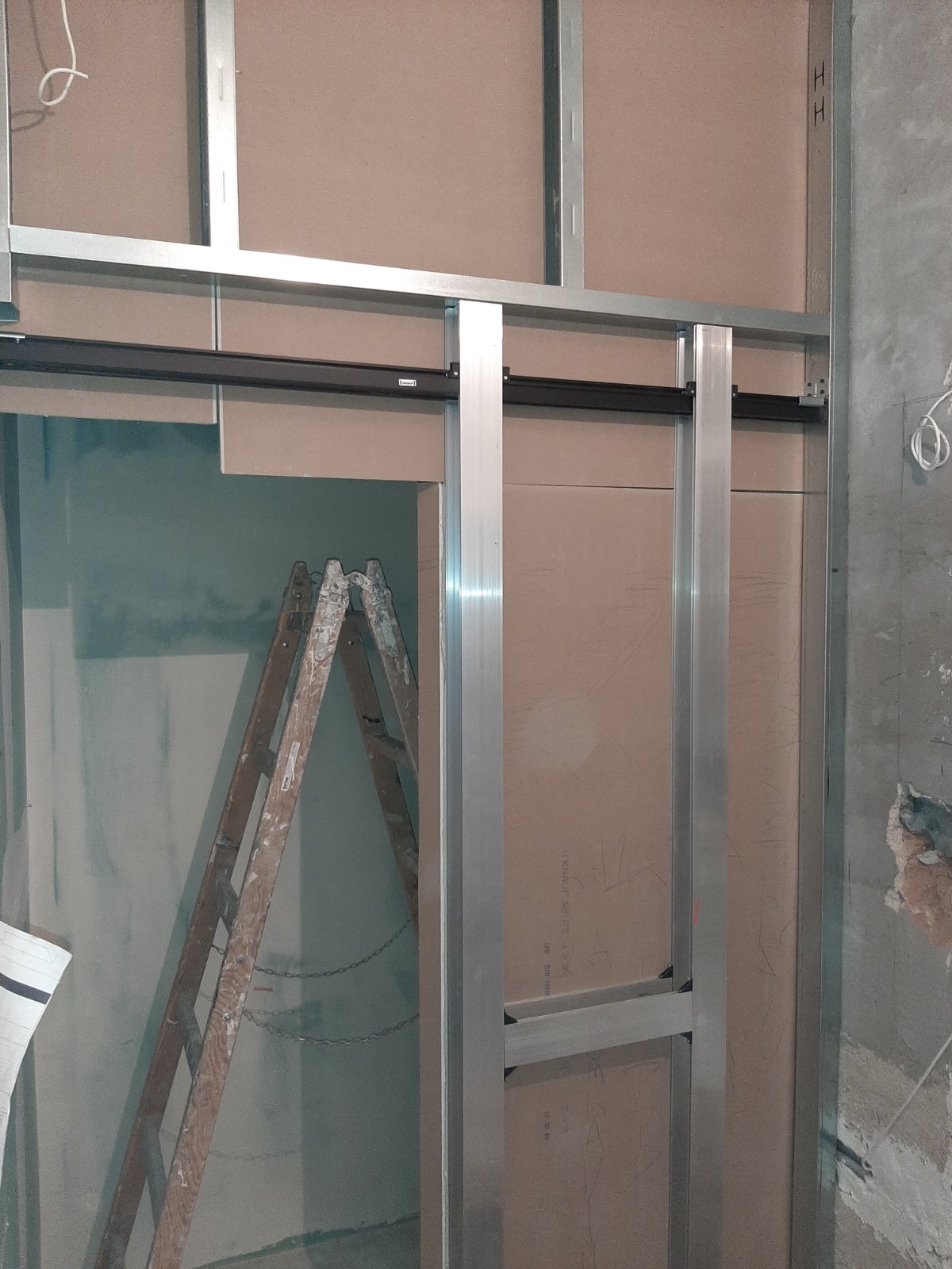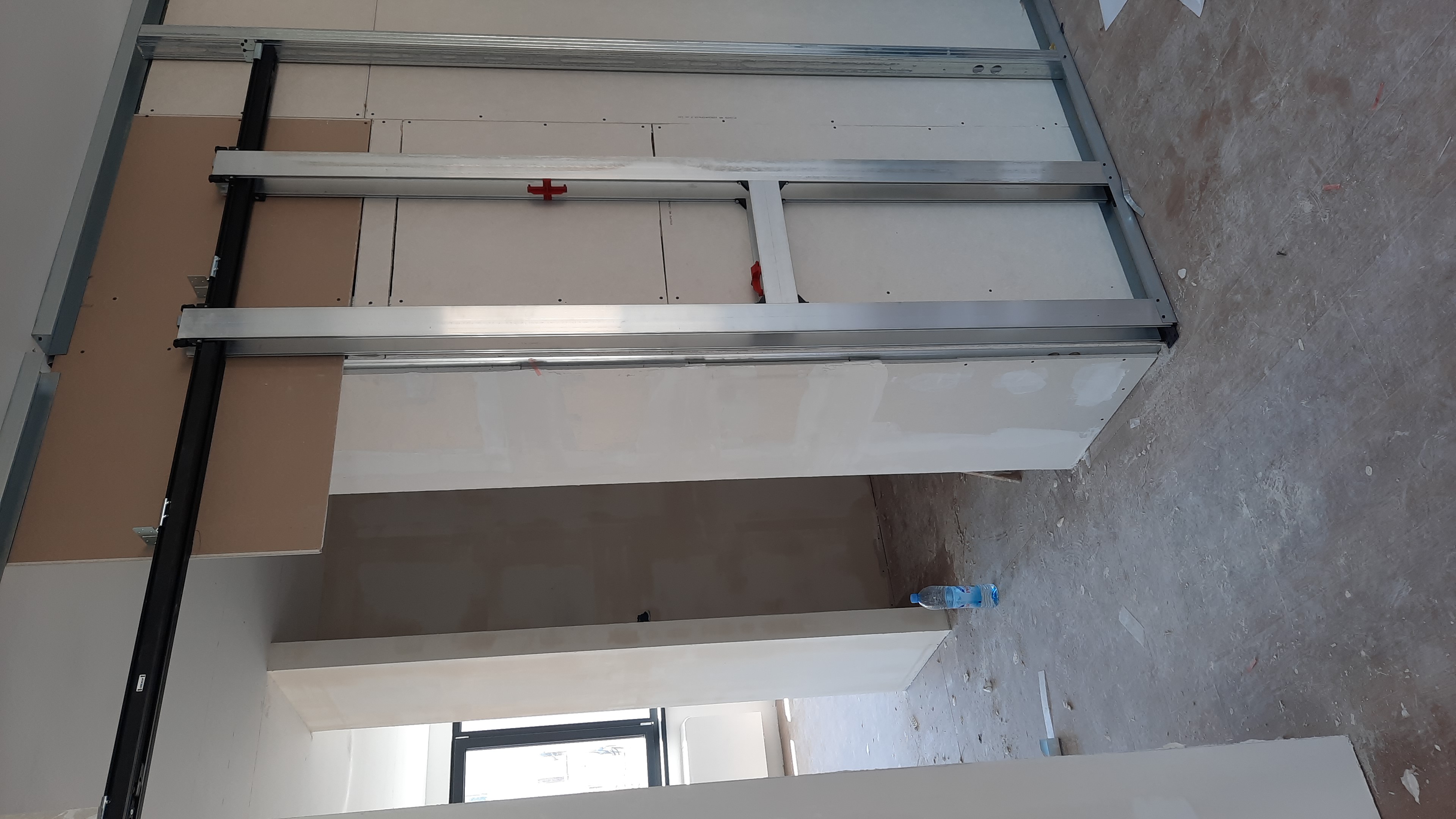 Knauf sistem kliznih vrata koja ulaze u zid od GKB ploča omogućava više slobodnog prostora oko samih vrata. Posebno dizajnirana konstrukcija predviđena je za vrata debljine do 4 cm (moguće je koristiti i stakleno krilo), koja se uvlače u sam zid od GKB ploča.